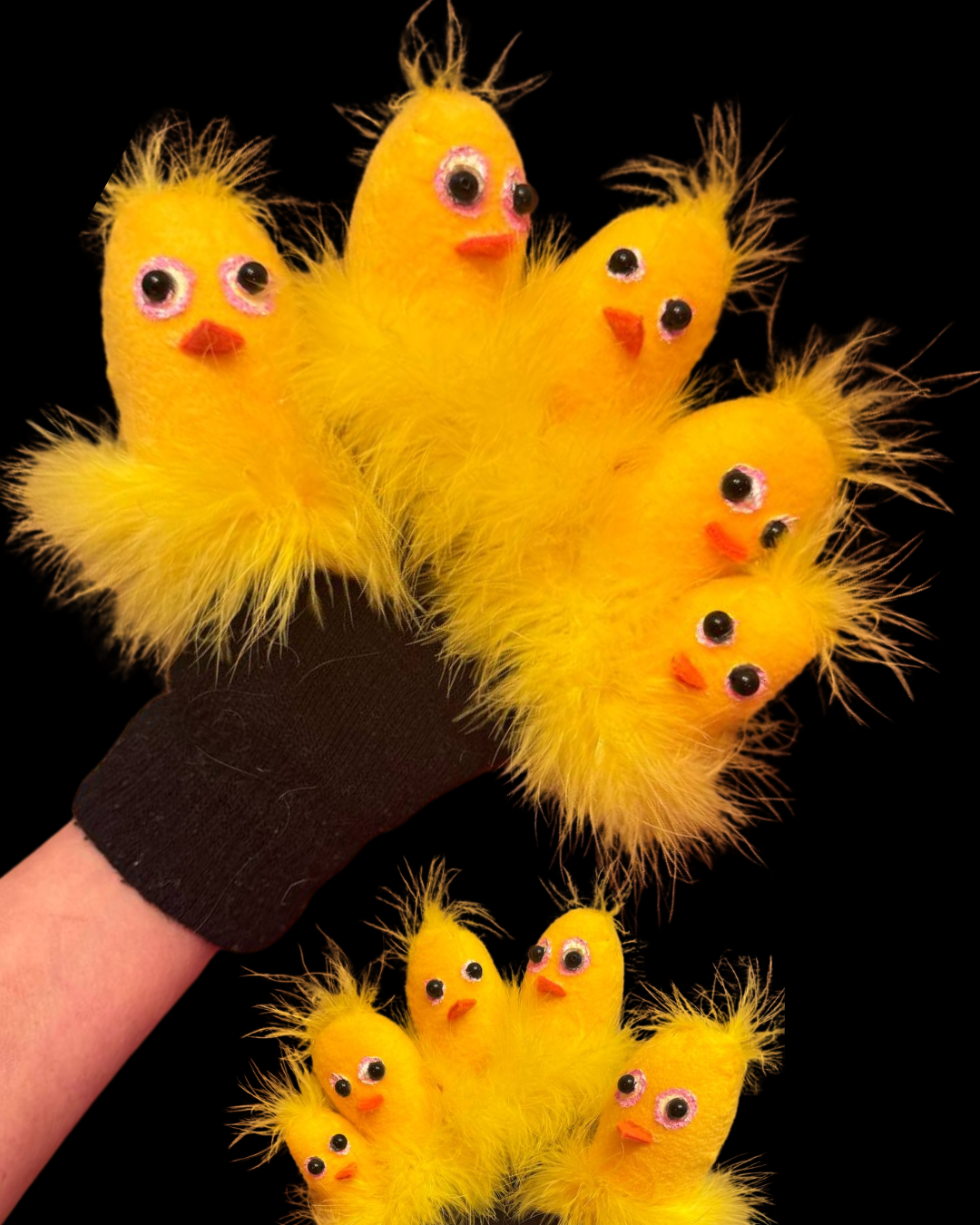 בובת כפפה- חמישה אפרוחים קסם האצבעות וסוד יצירתם