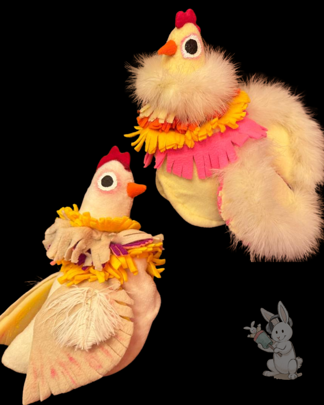 בובת כפפה- תרנגולת מטילה ביצה בעזרת מנגנון טבעי